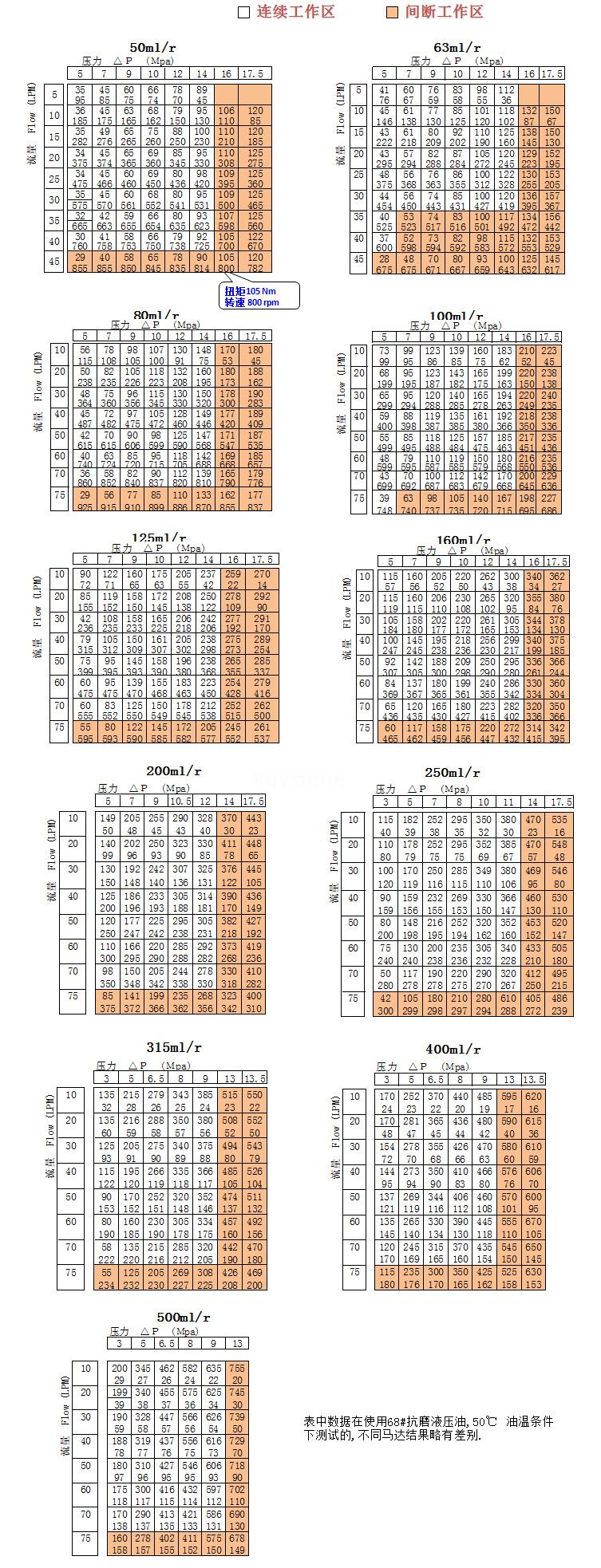 排量 (ml/r) | 50 | 63 | 80 | 100 | 125 | 160 | 200 | 250 | 315 | 400 | 500 | |